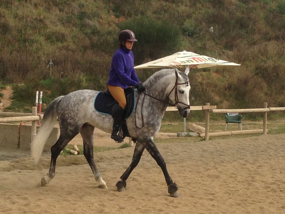 Tot i ser un cavall enter, quan és al quadrilong no el distreuen ni altres cavalls ni eugues (el que no treu que no el pugui espantar un cop sobtat, un cotxe que arrenca o frena sorollosament al costat de la pista, o uns marrecs jugant a la pilota). De fet, el que sempre tinc ganes d’escriure és que la màgia de l’equitació és percebre la inquietud del teu cavall abans que s’inquieti, reaccionar al seu ensurt quasi abans que el tingui, i que el teu animal senti que, cavalcant-lo tu, no ha de témer res. La màgia de l’equitació és que és un joc de mútua confiança.